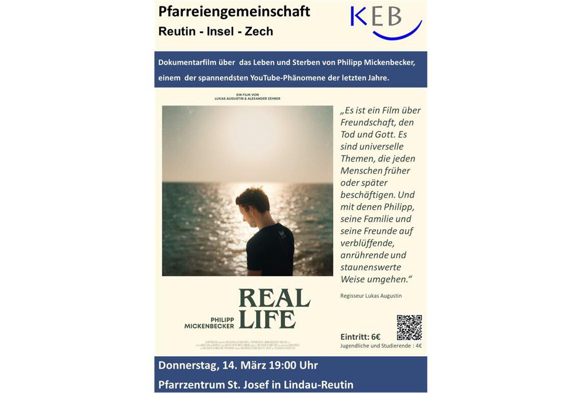 Ein Abend voller Emotionen prägte den Filmvortrag "Real Life", der das Leben und Sterben von Philipp Mickenbecker begleitete. Vom KEB-Team der Pfarrei St. Josef in Zusammenarbeit mit der KEB Landkreis Lindau e.V. organisiert, versammelten sich fast 50  Gäste, um an  diesem bewegenden Ereignis teilzunehmen.